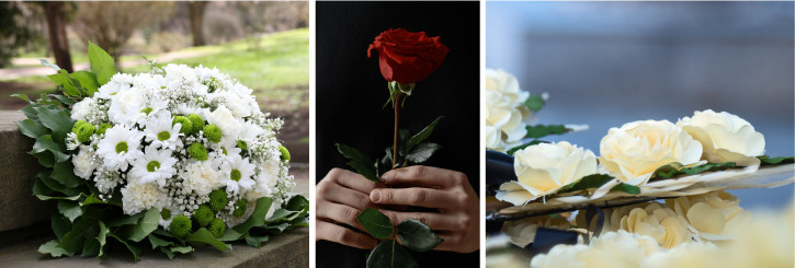 Vi har långerfarenhet av att skapa vackra blomsterarrangemang för begravning. Vi hjälper er även men en sista hälsning textad på band.